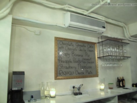The setting in Riquiqui is like a cute little dessert bar. The owners were great and the service were excellent. Three course dessert with choice of wine for $200. First course is an amuse bouche. Second course you have a choice. We chose the Chocolate Ganache Cake with Chocolate Tea Ice Cream and the Pineapple Polenta with Coconut Ice Cream. Third course were some petits fours. For the wine, we went with the Moscato d’Asti which is a sweet sparkling wine.