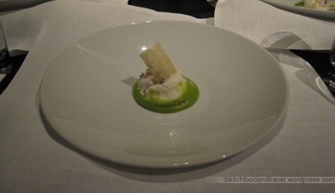This one bite king crab was an excellent way to start the tasting meal. The batter was light and there was some citrus taste that went well with the crab. It left me wishing I could have another bite. But then again, there were 12 more courses on its way.