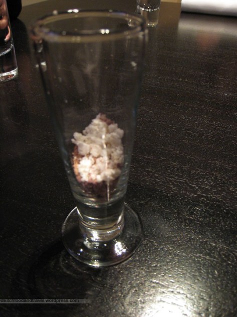 Hmmm… it looks like a whole bunch of powder. In fact, it pretty much is a whole bunch of powder. Just take in like a shot again and let your mouth hydrate it back into chocolate. It was ok I guess… not one of the better dishes though.