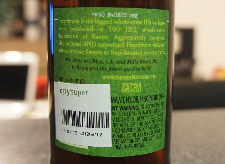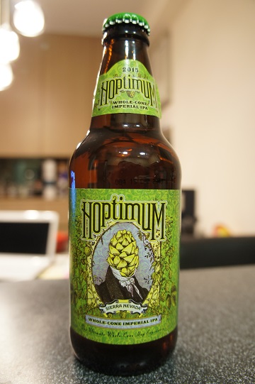 Brewer Description: (from bottle) Hoptimum is the biggest whole-cone IPA we have ever produced – a 100 IBU, whole-cone hurricane of flavor. Aggressively hopped, dry hopped AND torpedoed, Hoptimum delivers ultra-intense flavors to hop fanatics everywhere.