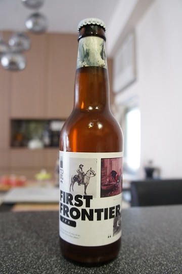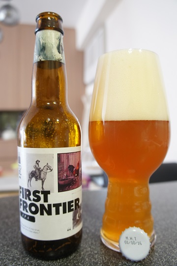 Brewer Description: (from website) First Frontier” We all got pieces of crazy in us, some bigger pieces than other” The thing about First Frontier is the hops. Easy… This is an IPA “the American way”, no sticky-sweet malt profile, just the real deal potent and aromatic hops. The result is a refreshingly dry, fresh and bitter IPA, heavily dryhopped with the three American hop varieties warrior, simcoe and centennial, dealing a punch of citrus, peach and grapefruit from the deepest of our hearts directly to ya face. Just added a bit of caramel malt; merely to harness and balance the alcohol.