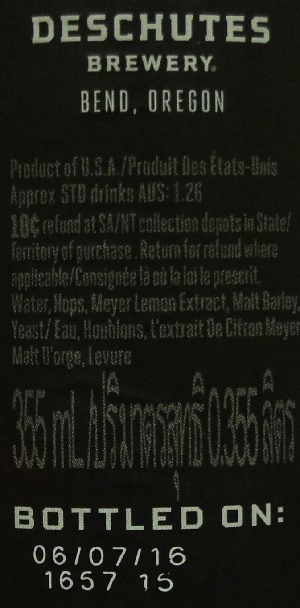 Brewer Description: (from bottle) India Pale Ale brewed with Meyer Lemon.
