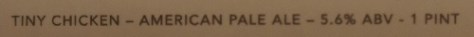 Brewer Description: (from website) With the New England summer fast approaching we release Tiny Chicken, another edition in our Small Bird Series of lower ABV, hazy pale ales. Deceivingly diminutive in name, Tiny Chicken packs a hoppy punch with a powerful combination of Galaxy and Amarillo. Engaging aromatics pop with notes of bright citrus and peach, while flavors of tropical fruit, melon, and orange sweep over the palate in refreshing waves. Finishing crisp and dry with slight earthy/spicy grain character from the use of locally malted wheat and Danko rye.