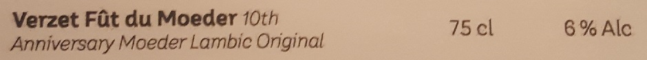 Brewer Description: (from Moeder Lambic menu) 10th Anniversary Moeder Lambic Original.