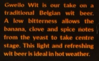 Brewer Description: (from can) Gweilo Wit is our take on a traditional Belgian wit beer. A low bitterness allows the banana, clove and spice notes from the yeast to take centre stage. This light and refreshing with beer is ideal in hot weather.