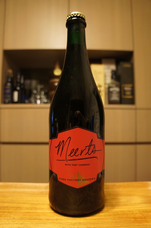 Brewer Description: (from bottle) Cherry Meerts is our take on the low alcohol style traditionally derived from the second runnings of Lambic. Our modern interpretation begins with Pilsner malt, raw wheat, and Saaz hops which is brewed using a turbid mash, long boil, and low hopping rate, and finally fermented in foeders with our wild yeast. This version was then refermented on tart cherries.