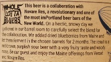 Other Notes: Oud Bruin with Wild Maine Blueberries. Oud Bluebs. Ale brewed for Novare Res Bier Café’s 10th Anniversary