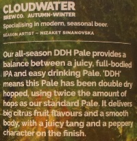 Brewer Description: (from can) Our all-season DDH Pale provides a balance between a juicy, full-bodied IPA and easy drinking Pale. ‘DDH’ means this Pale has been double dry hopped, using twice the amount of hops as our standard Pale. It delivers big citrus flavours and a smooth body, with a juicy tang and a peppery character on the finish.