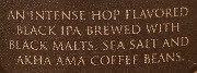 Brewer Description: (from bottle) An intense hop flavored Black IPA brewed with black malts, sea salt and Akha Ama coffee beans.