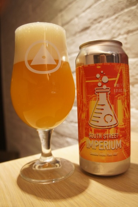 Brewer Description: (from website) Juice experiments are well underway here to explore some of the new toys we have at our new South Street facility. We had two leading theories on how to best use one of our new toys, both rooted in solid science, preliminary results both looked good… but different. So we thought… lets try both! We brought back the South Street version of the familiar companion set Experimentum and Imperium (Latin for Experiment and Control). Both feature our DIPA sized 2-Row Fractal fermentation, fractal grain bill, and a hop bill of Citra, Mosaic, and Sabra. These beers are parallel in recipe but not process. The difference focuses on two distinct uses of an exclusive piece South Street equipment and Experimentum utilizes our coveted Energy treatment process #twovariables. Both beers have a candy-like-tiki-cocktail aroma. South Street Imperium has notes and flavors of assorted citrus, peach, and crushed Pez candy with dank and slightly resinous finish and punchy rollercoaster of #EQJuice. South Street Experimentum offers flavors of bright tropical fruit, deep navel orange characteristics with mango and papaya in a distinctly succulently soft body while and crossing the finish line with our EQJuice. With the same ingredients but two different processes, a showdown is underway. Which one do you prefer?