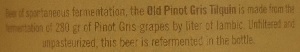 Brewer Description: (from bottle) Beer of spontaneous fermentation, the Old Pinot Gris Tilquin is made from the fermentation of 280 gr of Pinot Gris grapes by liter of lambic. Unfiltered and unpasteurized, this beer is refermented in the bottle.