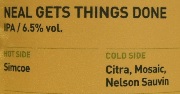 Brewer Description: (from Verdant webshop) Off the canning line, into the fridges, and drinking like a dream, Neal’s back getting things done. Sit back, relax and enjoy this flavour-packed ride of Simcoe, Citra, Mosaic & Nelson Sauvin – a magic trip awaits.