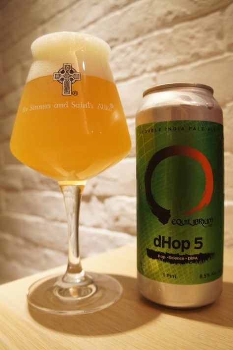Brewer Description: (from website) dHop5 is a 8.0% DIPA that supersizes one of our favorite Equilibrium IPAs: Fractal Citra/Galaxy. We scaled Fractal’s grain bill, water treatment, fermentation, and super sized the hop bill of citra and galaxy. dHop5 pours a milky yellow releasing aromas of passion fruit, peach, lime, and pineapple all integrated with a sorbet twist. The taste is a bright creamy tropical flavor that is dangerously drinkable and balanced with our signature #EQjuice finish.