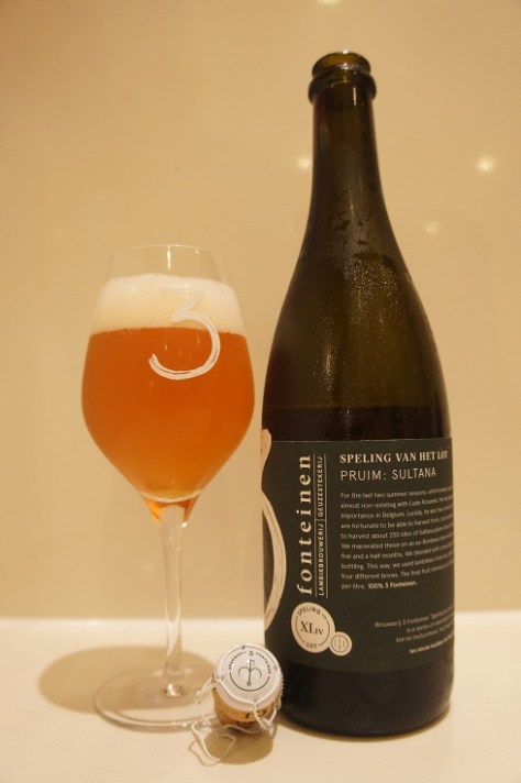 Brewer Description: (from bottle) For the last two summer seasons, unfortunately, peach harvest was almost non-existing with Ludo Rosseels, the last peach grower of importance in Belgium. Luckily, he also has some plum trees that we are fortunate to be able to harvest from. Last summer, we were able to harvest about 250 kilos of Sultana plums from his fields.
