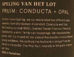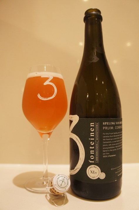 Brewer Description: (from bottle) For this Pruim Speling, we co-macerated two different plum varieties from Wijndomein Hoenshof, Conducta and Opal. We freed up a small 1000L toasted foeder from our friends at Garbellotto, a small family run cooperage. We macerated the plums, with stone and all, for almost five months on two different young lambikken. We bottled the fruit lambik straight from the barrel to the bottle. The final fruit intensity is 769 grams of plums per litre. 100% 3 Fonteinen.