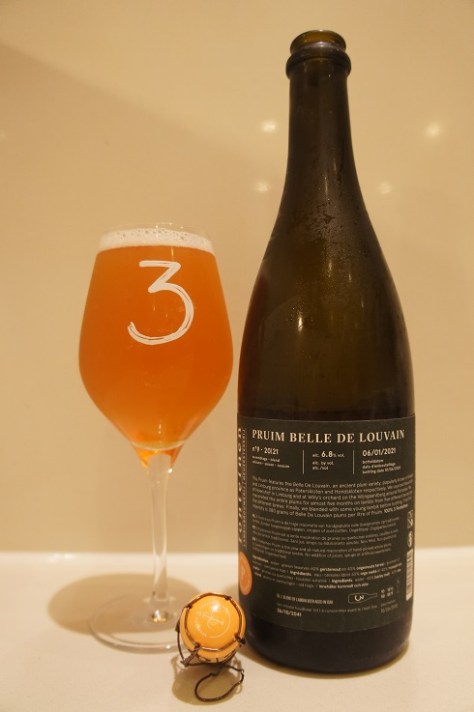 Intro: A 750ml corked and caged bottle, blend°9, season 20/21, bottled on 6th January 2021. Poured into a 3 Fonteinen stemmed glass.