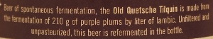 Brewer Description: (from bottle) Beer of spontaneous fermentation, the Old Quetsche Tilquin is made from the fermentation of 210g of purple plums by liter of lambic. Unfiltered and unpasteurized, this beer is refermented in the bottle.