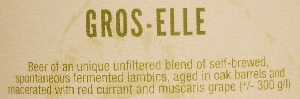 Brewer Description: (from bottle) Beer of unique unfiltered blend of self-brewed spontaneous fermented lambics, aged in oak barrels and macerated with red currant and muscaris grape (+/- 300 g/l).