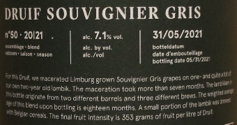 Brewer Description: (from bottle) For this Druif, we macerated Limburg grown Souvignier Gris grapes on one- and quite a lot of our own two-year old lambik. The maceration took more than seven months. The lambikken in this bottle originate from two different barrels and three different brews. The weighted average age of this blend upon bottling is eighteen months. A small portion of the lambik was brewed with Belgian cereals. The final fruit intensity is 353 grams of fruit per litre of Druif.