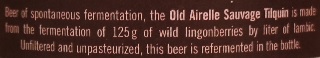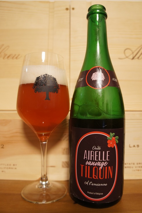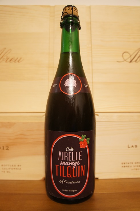 Brewer Description: (from bottle) Beer of spontaneous fermentation, the Old Airelle Sauvage Tilquin is made from the fermentation of 125g of lingonberries by liter of lambic. Unfiltered and unpasteurized, this beer is refermented in the bottle.