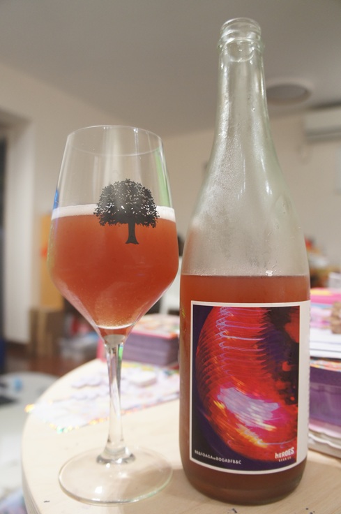 Brewer Description: (from bottle) Bourbon Barrel & French Oak Aged Grape Ale with Blood Orange, Green Apple, Dragon Fruit, Blueberries & Cinnamon. For our 7th anniversary we decided to go outside of the box. BB&FOAGAwBOGADFB&C is a Red Sangria-inspired Grape Ale. Aged in both Bourbon Barrels and French Oak, it offers subtle funk and fruity complexity. Expect vibrant, cocktail-like notes of grapes, blood orange, with a touch of cinnamon spice. The beer was fermented on skin and the oak aging introduces a soft tannin, mimicking the depth of a classic sangria. The finish is crisp yet smooth, with just enough sweetness to round out the bright acidity.