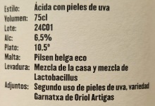 Brewer Description: (from bottle in Spanish) Segundo uso de pieles de uva, variedad Garnatxa de l’Oriol Atrigas.