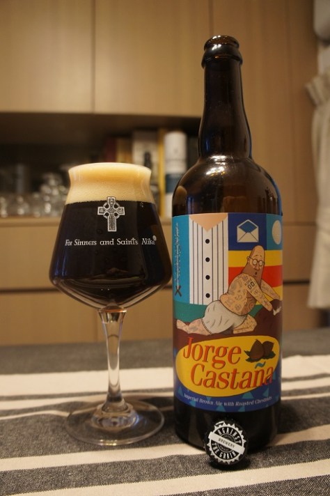 Brewer Description: (from bottle) The world’s are colliding. We did this for no reason. So under no circumstance are you to expect anything. Except, a rich chocolaty and nutty, barrel aged brown ale. Jorge pours dark and roasty, so don’t be alarmed when you ask for another. Its not you, its Jorge.