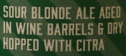 Brewer Description: (from bottle) Sour blonde ale aged in wine barrels with raspberries.