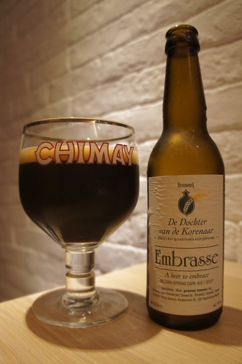 Brewer Description: (from website) Embrasse matures four to six months in whiskey barrels. For the peated oak aged Embrasse Islay barrels are used. By barrel aging the beer it takes the rich tones of the whiskey and the beer gets a softer and fuller taste.