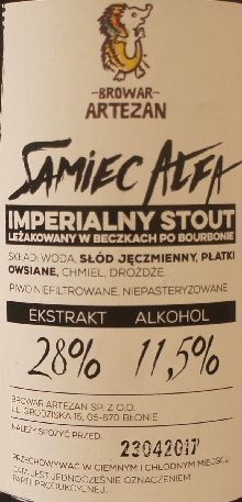 Brewer Description: (from bottle) Imperialny Stout leżakowane w beczkach po bourbonie (which translated from Polish means) Imperial Stout aged in boubon casks