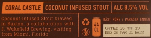 Brewer Description: (from can) Coconut-infused Stout brewed in Buxton, a collaboration with J. Wakefield Brewing, visiting from Miami, Florida.