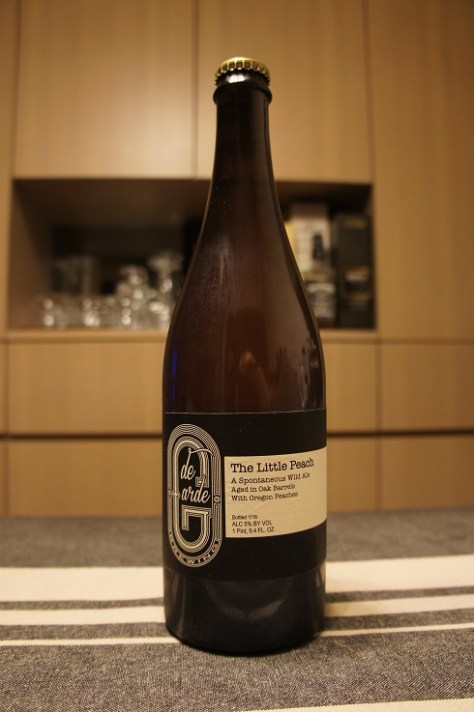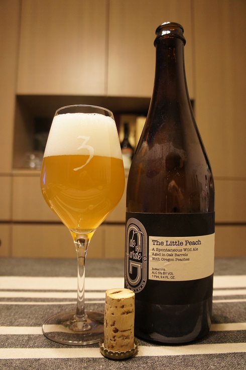 Brewer Description: (from bottle) A spontaneous Wild Ale aged in oak barrels with Oregon peaches.