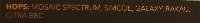 Other Notes: Hops – Mosaic Spectrum, Simcoe, Galazy, Rakau and Citra BBC