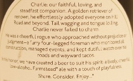 Brewer Description: (from website) Our low-abv Farmstead® table pale ale – crafted from American malted barley, malted wheat, New Zealand and American hops, our distinctive yeast blend, and water from our well – was conditioned in wine barrels and then dry-hopped before packaging and bottle conditioning. Nine months in wine barrels and then dry-hopped with Citra®, Mosaic®, and Simcoe® before packaging and bottle conditioning.