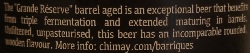 Brewer Description: (from bottle) The “Grande Réserve” barrel aged is an exceptional beer that benefits from triple fermentation and extended maturing in barrels. Unfiltered, unpasteurised, this beer has an incomparable rounded, wooden flavour.