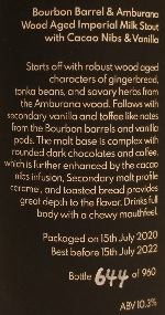 Intro: A boxed, black waxed, 650ml bomber, bottle 307 of 720, packaged on 4th October 2021, and with a best before date of 4th October 2024. Poured into a snifter glass.