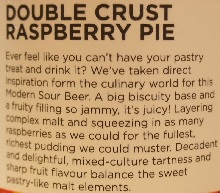 Brewer Description: (from bottle) Ever feel like you can’t have your pastry treat and drink? We’ve taken direct inspiration from the culinary world for this Modern Sour Beer. A big biscuity base and a fruity filling so jammy, it’s juicy! Layering complex malt and squeezing in as many raspberries as we could for the fullest, richest pudding we could muster. Decadent and delightful, mixed-culture tartness and sharp fruit flavour balance the sweet pastry-like malt elements.