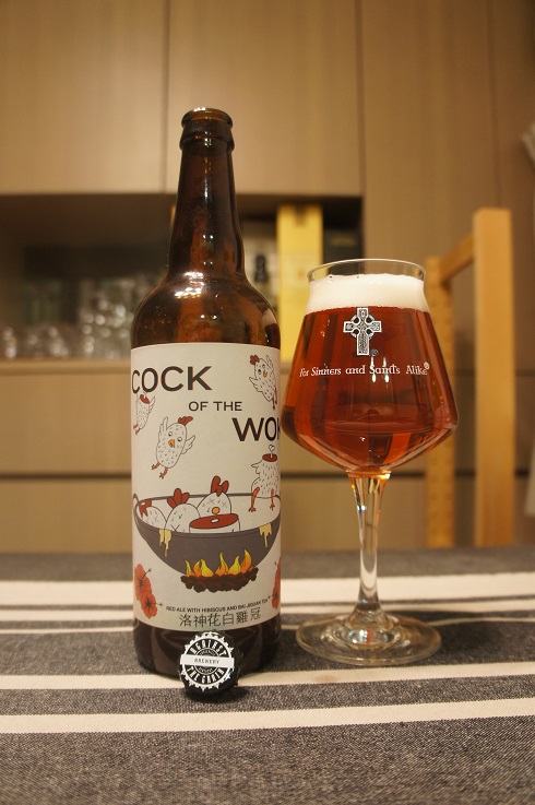 Brewer Description: (from bottle) A collaboration. Ancient Chinese proverb states: “Man with hole in pocket feels cocky all day.” So true… as true and righteous as this auspicious red ale brewed with Hibiscus and Bai Jiguan Oolong tea. Against the Grain and Moonzen collaborate to celebrate the Year of the Fire Rooster. Tso good you’ll frip out!