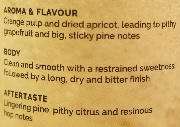 Taste: Sweet-ish pine, candied orange, citrus zest, grapefruit pith, light stone fruit notes, with a bitterish finish.