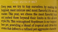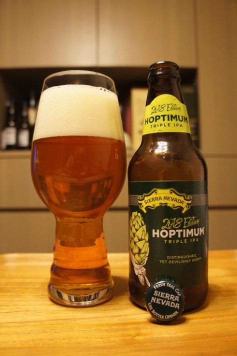 Brewer Description: (from bottle) Every year, we try to top ourselves by making the hoppiest, most intense and most flavorful IPA we can muster. This year, we chose the most flavorful hops and pushed them beyond their limits in this all-new triple IPA. This reimagined Hoptimum is our hoppiest beer yet, providing a blend of tropical and citrus hop aroma that delivers a refined yet aggressive character.