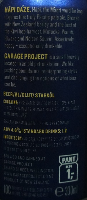 Brewer Description: (from can) Hāpi the Maori word for hop, inspires this truly Pacific pale ale. Brewed with New Zealand barley and the best of the Kiwi hop harvest, Motueka, Wai-iti, Riwaka and Nelson Sauvin. Assertively hoppy – exceptionally drinkable.