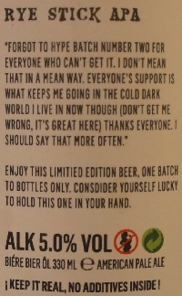 Other Notes: American Pale Ale. Keep it real, no additives inside!