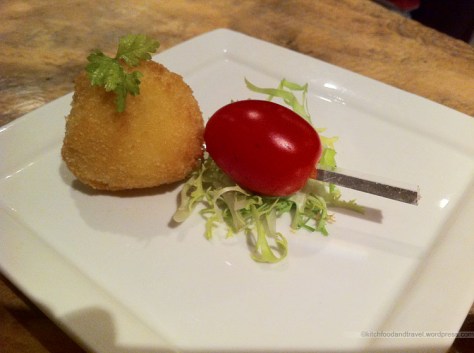 The mozzarella ball came as an amuse bouche. It was crispy on the ourside but unfortunately the cheese inside was only lukewarm so it wasn’t as good as it could have been. The tomato and the greens balanced out the fried factor.
