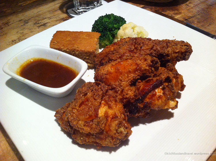 Honestly, I’m not sure why I’m comparing a restaurant like Liberty with KFC when you look at the price, comfort etc… (perhaps its ingrained in my mind that KFC = fried chicken). KFC fried chicken is good, but this is even better! I have to say that I was very impressed with the fried chicken here. The chicken was of a very nice quality and despite it appearing dry on the outside, the meat inside was completely different. There was a mix of dark and white meat. Normally I prefer dark meat because it is fatter and thus harder to screw up and dry out. While the chicken legs and thighs from KFC are usually nice, the breast is usually a bit dry. At Liberty, both the dark and white meats were amazingly juicy and succulent. It was so good, that it really did not need the gravy. The vegetables were nothing to shout about but was good with the spare gravy. The cornbread on the other hand was like the chicken, very good. It was warm and amazingly tasty with a slight crunch as you bite into it for great texture. I could have eaten a lot more of the cornbread!
