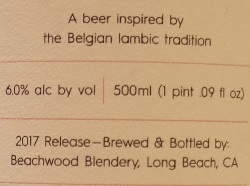 Brewer Description: (from bottle) A beer inspired by the Belgian lambic tradition. Belgian-style sour ale aged in oak barrels.