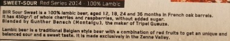 Brewer Description: (from bottle) BIIR Oude Gueuze ia a 100% lambic beer, aged 12, 18, 24 & 36 months in French oak barrels. Blended by Gunther Bensch (Montaigu), the maker of Tripel Gueuze.