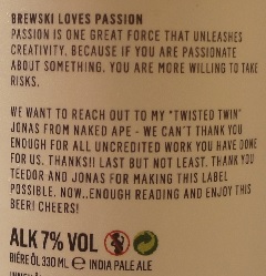Other Notes: India Pale Ale. Keep it real, no additives inside!