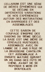 (translated to English) This Saison de coupage is inspired by the saisons of the 19th century. The base is a rustic cereal beer, blended with 2-year-old lambic from Brasserie Cantillon. This was then aged for a year in oak barrels, before resting for 6 months in bottles.