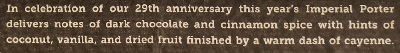 Aroma: Light roast, sweet malt, chocolate, molasses, peanut, and whiskey notes.
