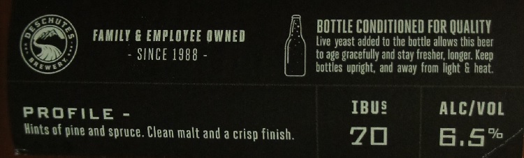 Brewery: Deschutes Brewery Country: USA ABV: 6.5% Style: American IPA Other Notes: 70 IBUs